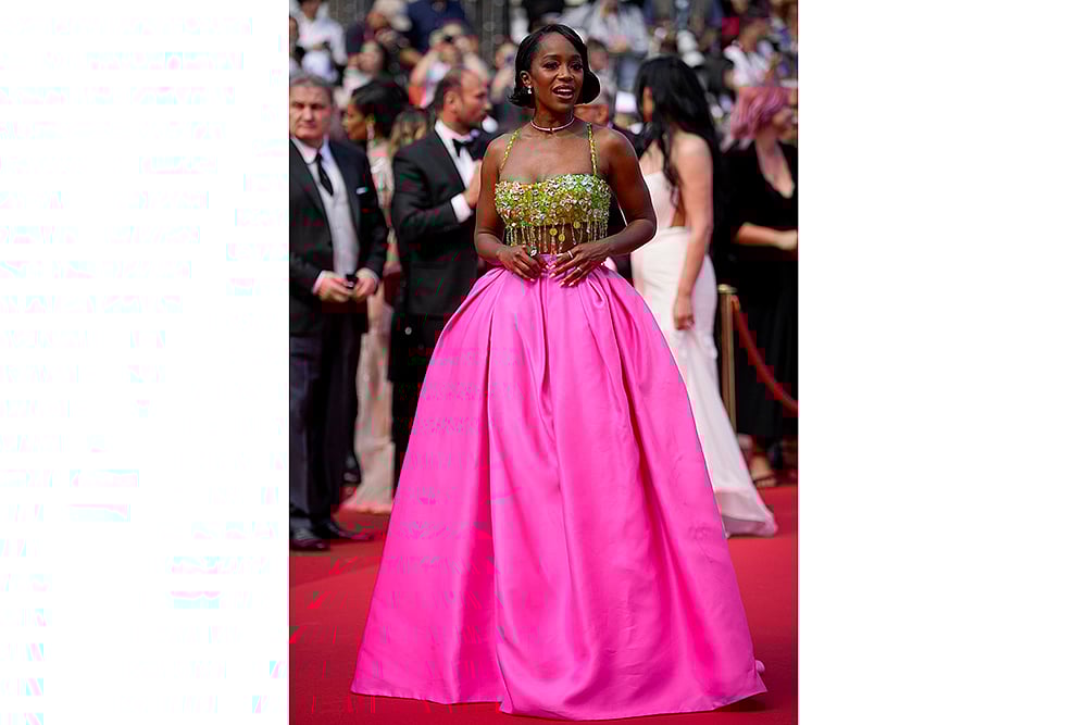 Aja Naomi King poses for photographers upon arrival at the premiere of the film ‘Beating Hearts’ at the 77th international film festival, Cannes, southern France.