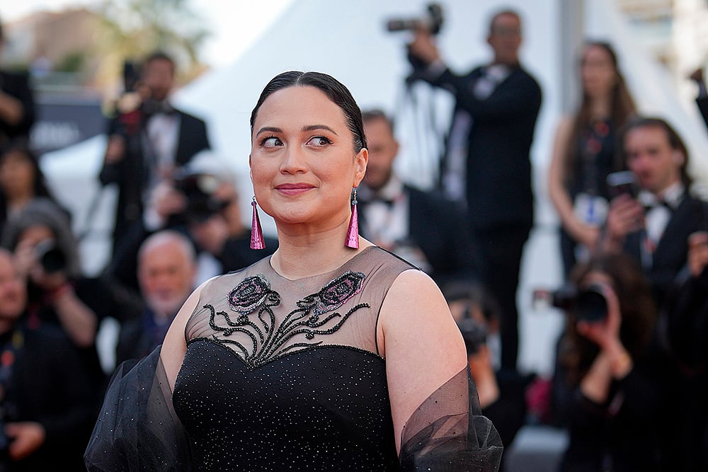 Jury member Lily Gladstone poses for photographers upon arrival at the premiere of the film ‘Beating Hearts’ at the 77th international film festival, Cannes, southern France.