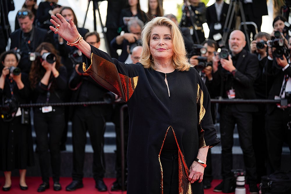 Catherine Deneuve poses for photographers upon arrival at the premiere of the film ‘Beating Hearts’ at the 77th international film festival, Cannes, southern France.