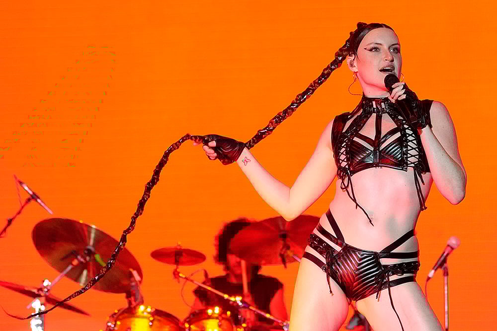 Katie Gavin of the band MUNA performs during the LA Pride in the Park festival at Los Angeles State Historic Park in Los Angeles.