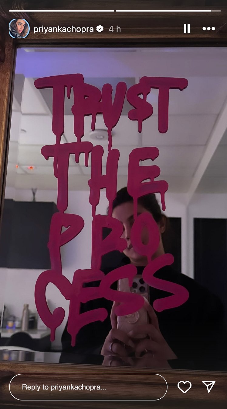 The actress took to her Instagram stories and shared a picture of herself standing in front of a mirror with "trust the process" written on it.
