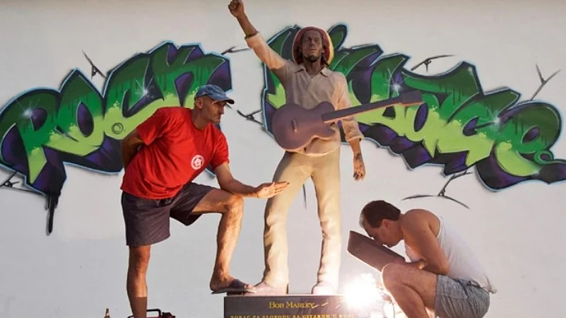 Less than a decade after the region's horrific civil war, musicians from former Yugoslavia raised this statue of late Jamaican reggae legend Bob Marley as a symbol of peace. At the Rock Village music event in the Serbian hamlet of Banatski Sokolac, prominent Serbian and Croatian artistes unveiled the statue with the inscription (in Serbo-Croat): "Bob Marley — fighter for freedom armed with a guitar."