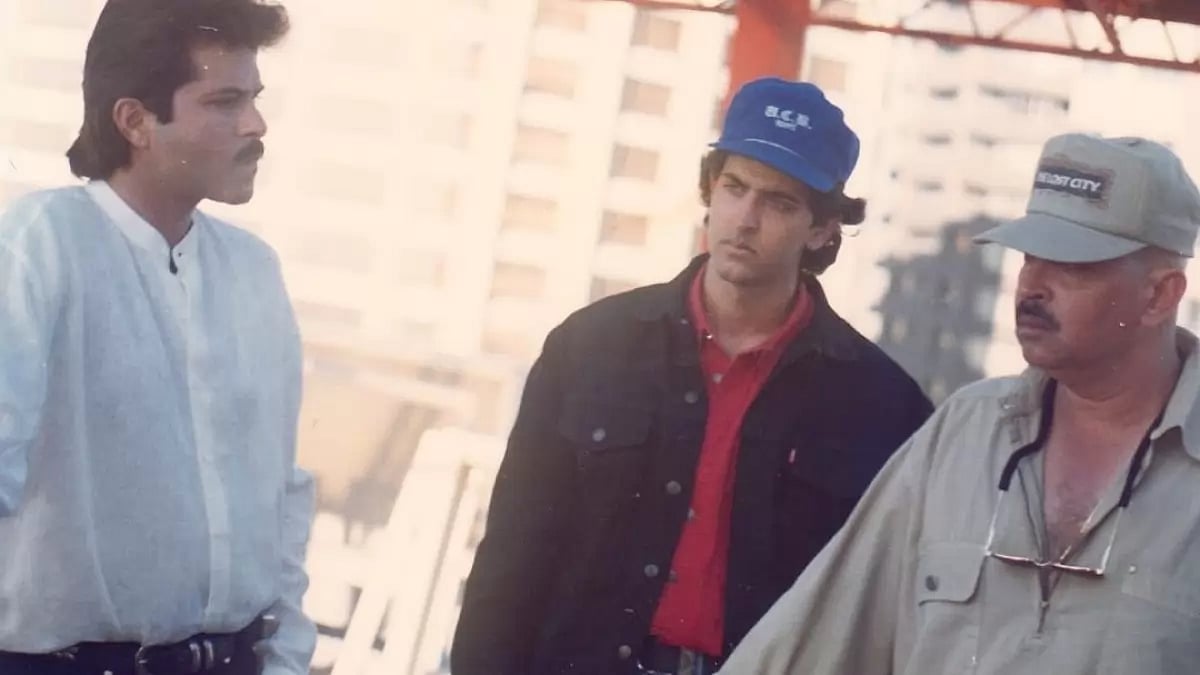 The nostalgic photo captured a spontaneous moment between Hrithik Roshan, Anil Kapoor, and Rakesh Roshan during the filming.