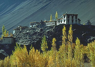 Faces, hairstyles, costumes and headdresses in a famous banquet scene painted on one of Alchi's walls have tantalised scholars for years for their Central Asian/Silk route echoes. Renowned US-based scholar Pratapaditya Pal, in his authoritative study of Alchi, says the murals reveal "an eclectic civilisation" in which elements from Tibet, Kashmir, the Indo-Aryan, Iranian and Turko-Mongol cultures, even of Byzantium, commingled. This, he says, was because the Kashmir of the times was a remarkably cosmopolitan place "where Tocharians and Turks, Iranians and Chinese, Dards and Tibetans rubbed shoulders".
