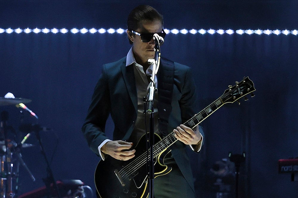 Paul Banks, lead singer of the American rock band Interpol, performs during a free concert at the Zocalo in Mexico City.