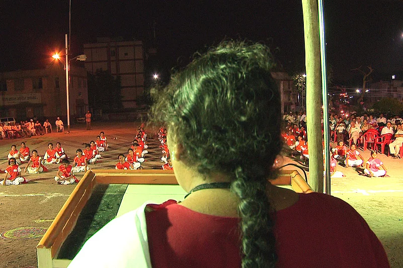 This rare footage is the soul of the film. Teenaged girls being made “spiritually and physically saksham (capable)” to fight threats to their culture; learning martial arts and shooting to safeguard ‘Hindu values’—while being told of the essential “weakness” of women. Some complex characters open up fascinatingly. For example, Prachi doesn’t want to marry, but her father believes she must for religious reasons. The way she argues with him shows even the most indoctrinated are capable of raising questions and thinking through issues. Prachi now lives away from her family and works in a legal firm but still believes in the Durga Vahini’s tenets. Contrasts like this make Pahuja’s film fascinating. “But it’s not contradictory for Prachi,” says Pahuja. “The dualities coexist in her. She’s comfortable with them.”