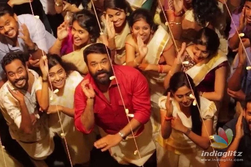 In the official video, the song features college students dancing in their classroom and corridors, much to the amusement of the onlookers and to the irritation of the vice-principal (actor Salimkumar) seen walking past in a hurry. While most of the men in shirts wear pants, the others are seen with the ethnic mundu tied round their waist. The mostly churidar-clad women are in equal participation in the frenzy, as the camera also pans out to the broader campus and its leafy pockets. In between are scenes of men engaging in what potentially look like both the start of a clash but soon end up as happy pranks played against each other. Towards the end of the fun song is seen Mohanlal, riding into the campus on a bicycle. The superstar is their new vice-principal.