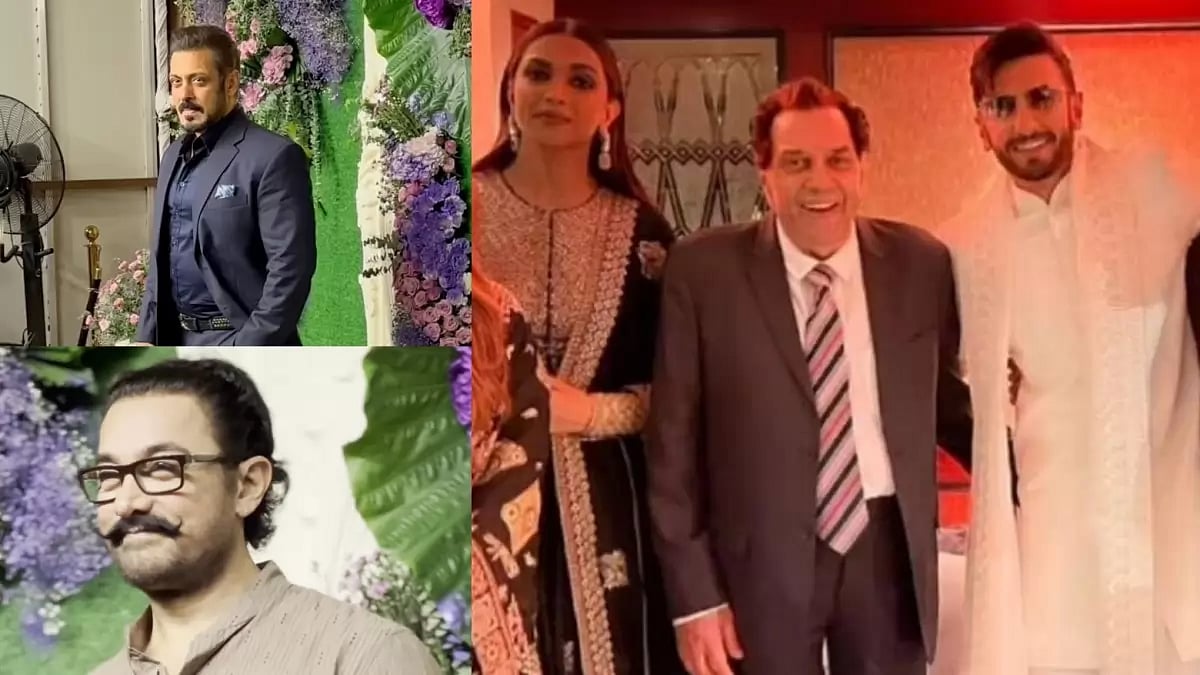 Dharmendra’s grandson and Sunny Deol’s son Karan Deol married Drisha Acharya during the weekend in Mumbai. The Deols, on Sunday, threw a star-studded wedding reception for their Bollywood friends. The event had actors like Salman Khan, Aamir Khan, Suniel Shetty, Ranveer Singh and Deepika Padukone marking their presence