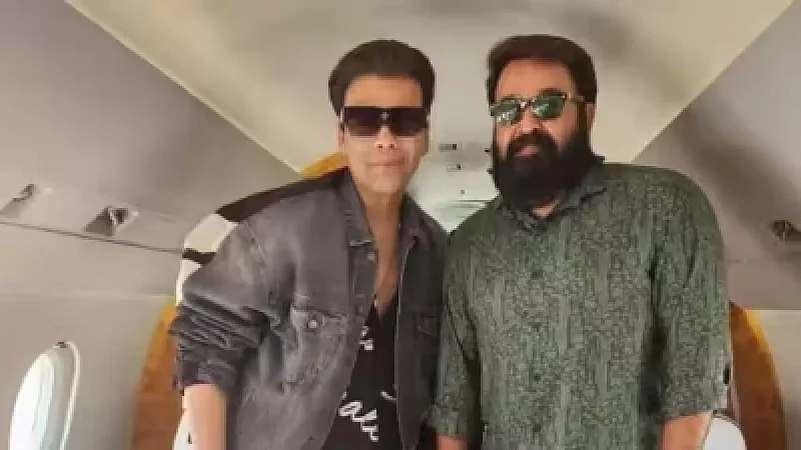 On Friday, the 'Kabhi Khushi Kabhie Gham' director took to Instagram and shared a picture of himself in the company of Mohanlal from a private jet. While KJo donned loose-fitted clothes and looked funky, the senior superstar is seen wearing a green shirt paired with black denims in the picture. The superstar rounded up his look with matching green shoes and a pair of sunglasses.