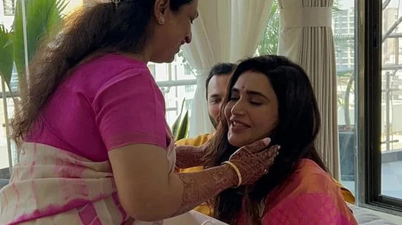 Newly-wedded couple, actress Karishma Tanna and businessman Varun Bangera, entered their home with a traditional ‘Griha Pravesh’ ceremony a few days after their marriage. Both of them were welcomed to the house by Bangera's mother in a video posted online.