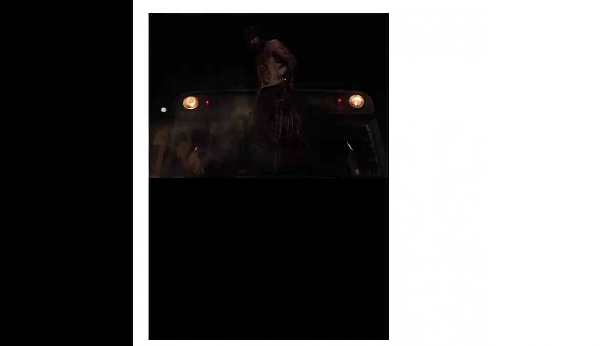 The bus is stained red with a severed arm and blood on the back and front. The driver notices him and is about to answer his radio when Sudeep blasts his head with a shotgun. With a bunch of cars coming towards him, Sudeep smoking a cigar says “I’m not a human, I’m a demon.”