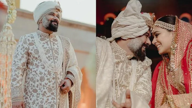 Filmmaker Luv Ranjan got married to longtime girlfriend Alisa Vaid in Agra last month. He shared pictures from his wedding on his Instagram profile on Monday. The director wore a white and gold sherwani made by fashion designer Manish Malhotra, while Vaid picked a red lehenga by fashion designer Sabyasachi.