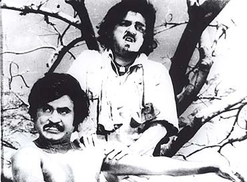 1975: Apoorva Raagangal (Rare Melodies), co-starring Kamalahaasan, marksRajni's Tamil debut. Played a negative character. A controversial film about relationships between men and women with wide age gaps.