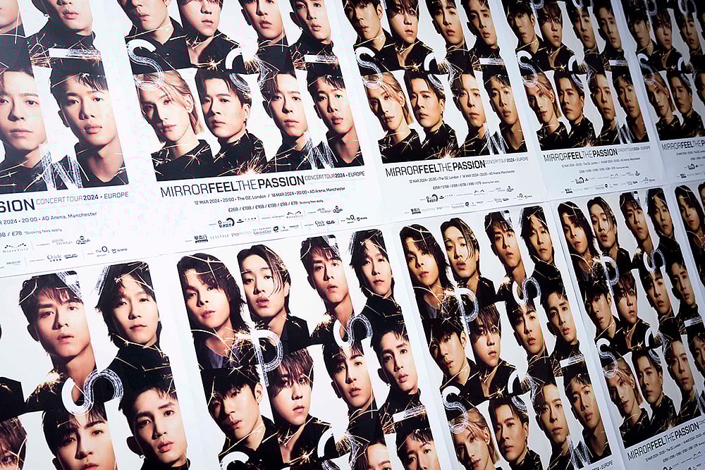 From left, Tiger Yau, Frankie Chan and Lok Man Yeung of Mirror pose with a ‘Debut Performance Award’ at the O2 Arena awards for Mirror in London.