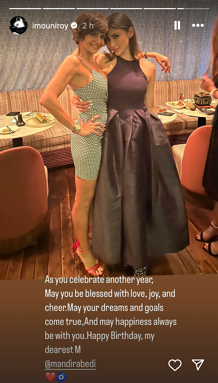 Actress Mouni Roy showered love on Mandira Bedi, as she turned 52 on Monday, and said, 'may happiness always be with you'.