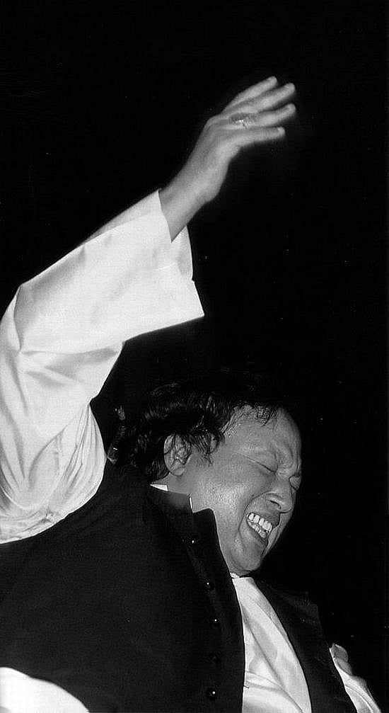 At the old Mehfil-e-Sama grounds in front of Data Darbar in Lahore (now covered with ugly concrete as part of the new Data Darbar complex), we used to go to the all-night qawwali sessions during the annual Urs. It was there in 1972 that I heard Nusrat for the first time, a year after his father's death and was amazed by the virtuosity of this round young man. The energy, the passion, pushing the music to its limits with eyes squeezed shut, everything, the world would one day know him by, were already there. An enthusiastic Lahori crowd roared its approval, galvanizing the young qawwal to even more high-pitched and painfully powerful creations.