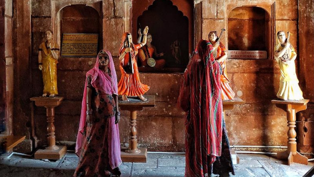 "Paayoji maine Ram Ratan dhan paayo (I have been given the richness of Lord's name blessing”, a famous Meera bhajan reverberates inside a giant book shop as one strolls past small tea stalls and vendors selling flowers in the lane leading to the Meera Bai temple. During the 500-metre walk, one encounters happy strangers who are eager to narrate legends associated with the mystic. Most of the shops nearby have miniature wooden figures and artworks of Meera Bai in her famous prayer position- clutching an ektara (a musical instrument with one string), with a dazed look on her face in the devotion of Lord Krishna, whom she endearingly called Giridhar.