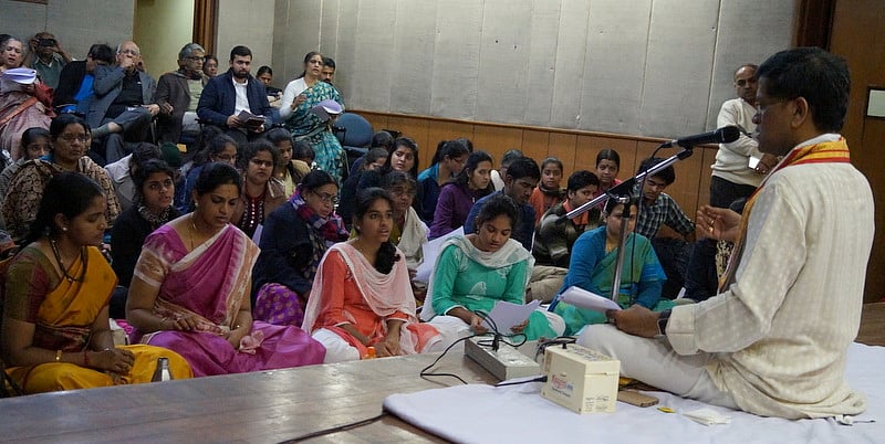 On Sunday forenoon, Santhanagopalan and his team rendered at IGNCA the famed pancharatna kritis (five gem-like compositions) of Thygaraja (1767-1847)—one of the greatest Carnatic composers.