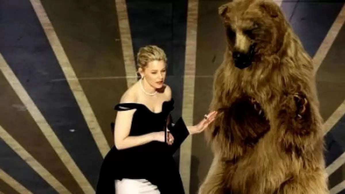 When she came on stage, she said: "He (pointing at the bear) tripped me, I recently directed 'Cocaine Bear' and without visual effects, this is what the bear looks like. Terrifying."