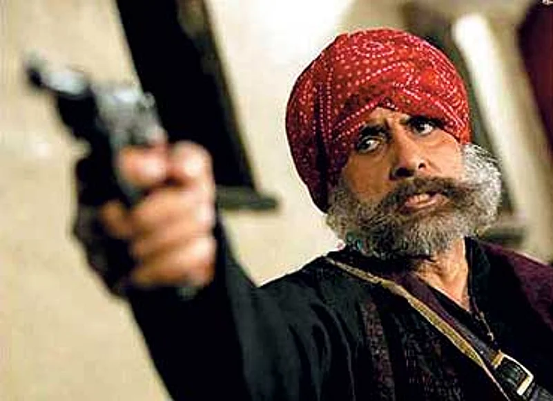 The look was meant to be flamboyant and rakish, but designer Akki Narulacouldn't quite pull off a Johnny Depp on Amitabh Bachchan. The Big B lookedpositively weighed down under all that patchwork, the feather in the cap nofeather at all.