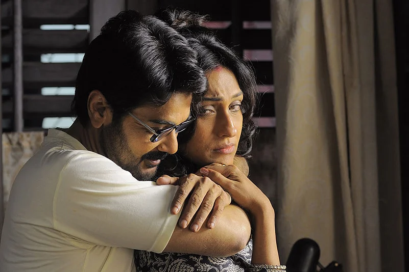 Up to that point Prakton documents the disintegration of a marriage with all its complexities and shades of grey. The veteran actors delineate romance and exasperations with a twitch of a facial muscle or a swallowed breath. Unfortunately, the script ventures into didacticism and dishes out a moral that makes women’s empowerment look like a social inconvenience at best and an impediment to her own happiness at worst. The second wife—deliberately characterised as bovine, talkative, scheming—comes out the winner. Sub-plots provide comic relief. Especially entertaining are the scenes between Soumitra and Sabitri—the great actress has impeccable comic timing.