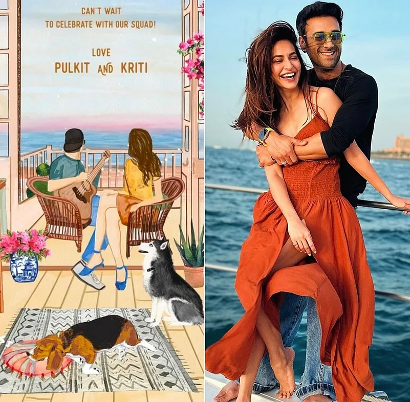 The purported wedding invite card of Pulkit Samrat and Kriti Kharbanda has gone viral on social media since March 5. The card features the would-be bride and groom seated on a balcony with their furry friends and Pulkit plays the guitar; both enjoying nature and the calm atmosphere.