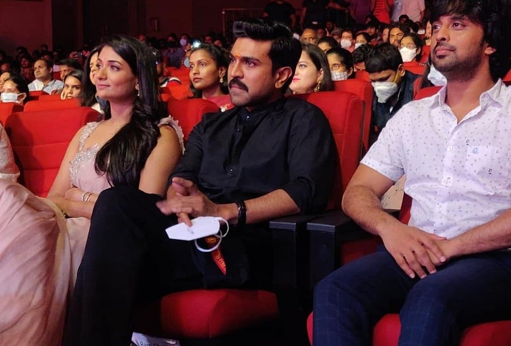 Telugu superstar Ram Charan attended a grand pre-release event of well known Kuchipudi dancer Sandhya Raju's debut film 'Natyam'. The film, which will release in theatres on October 22.