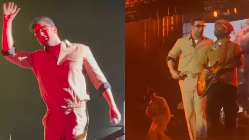 Ranbir Kapoor who is gearing up for the release of 'Animal' made a surprise appearance during Arijit Singh's concert on Saturday in Chandigarh. While Arijit treated the fans with the live version of 'Satranga' from 'Animal', Ranbir Kapoor's surprise entry set the stage on fire. Ranbir looked stylish in a co-ord set and fans went gaga to see both together in one frame sharing the same stage. Videos from the concert have gone viral on social media where fans were seen cheering for them.