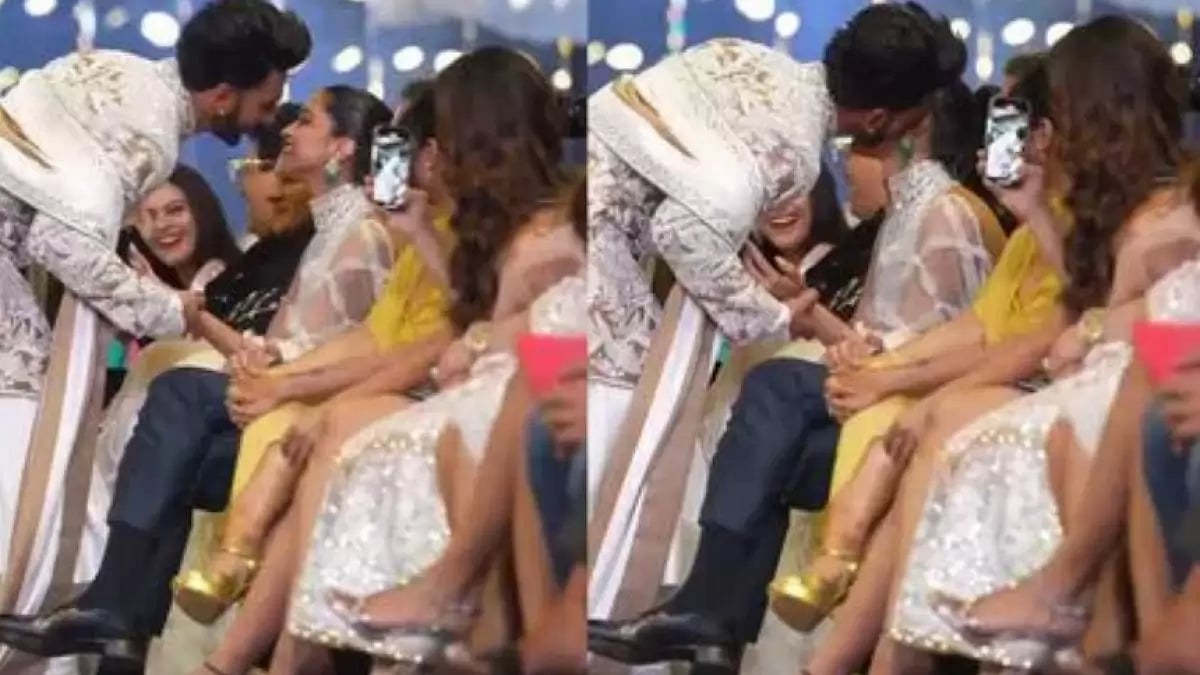 On Thursday night (July 20), Ranveer Singh walked the ramp for Manish Malhotra's Bridal Couture show in Mumbai. He turned heads in a white sherwani with a floral printed jacket. To everyone's surprise, leaving his ramp walk in the middle, the 'Bajirao Mastani' actor went near Deepika and kissed on her cheek. He also touched his mother Anju Bhavnani's feet, and even greeted and kissed Karan Johar on his cheek, and then continued his ramp walk. The video from the event has gone viral on social media.