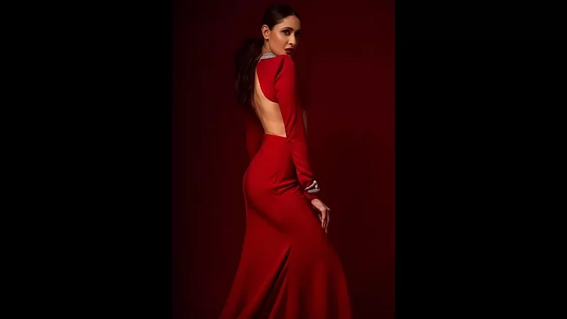 Pragya Jaiswal took the red carpet by storm in her captivating red ensemble that we will be dreaming of for days. Flaunting a stunning combination of a fierce top and an elegant skirt with long trail, the actress completed the loom with a bold red lip and coordinated heels. Pragya served us with a look that will go down in the fashion books of IIFA.