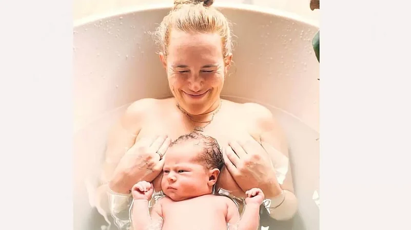 "My midwife and my partner caught her. It was the wildest thing. She had a cord wrapped around her neck, but it was also wrapped around her body in like almost like a prom sash. We had four hands under there, under the birth stool. I'm going, 'Give me the baby. Give the baby'.
