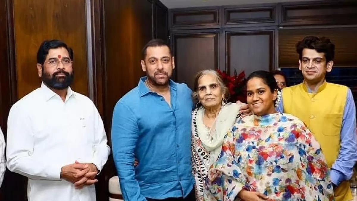 Salman came wearing a blue shirt paired with black pants, even as Shinde stuck to his regulation white shirt and white pants. Helen was seen wearing a traditional suit.