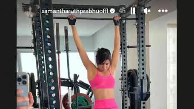 Popular Tamil-Telugu actress Samantha Ruth Prabhu does not compromise on her fitness routine, be it either sickness or pain. The actress did a heavy and grilling workout on Sunday, despite the pain she has undergone due to her Myositis diagnosis, stretching herself and showcasing her toned physique.