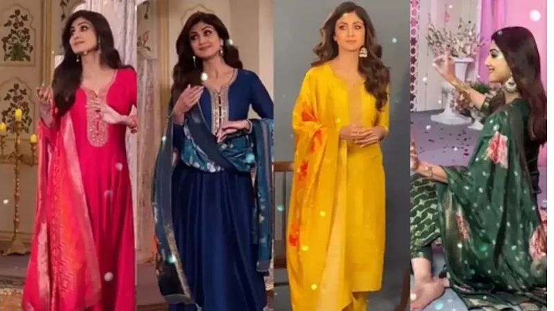 The behind-the-scene (BTS) video shows Shilpa laughing her heart out. Then, we can see Shilpa wearing a yellow suit and a matching floral dupatta.