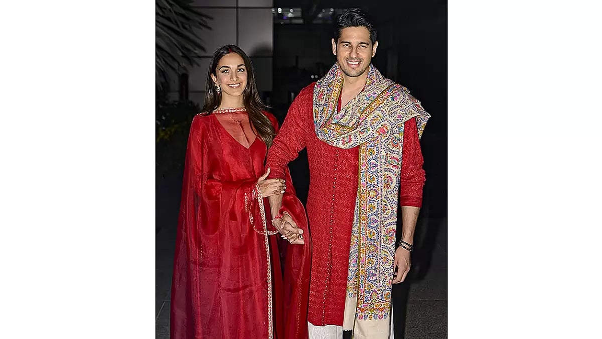 Sidharth and Kiara tied the knot on Tuesday at the Suryagarh Palace in Jaisalmer. For the wedding ceremony, Kiara wore a Manish Malhotra-designed pink lehenga, and diamond jewellery. Sidharth opted for an ivory sherwani with an exquisite royal lustre.