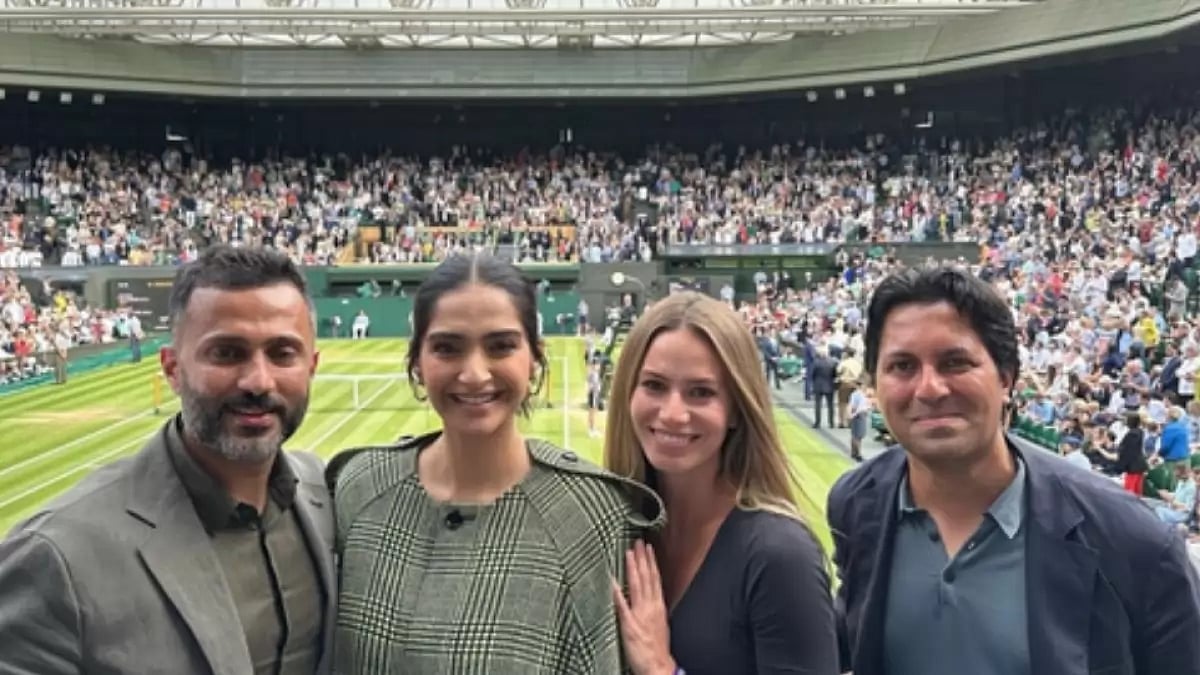 Actress and fashion diva Sonam Kapoor and her husband Anand Ahuja on Sunday attended the nail-biting Wimbledon men’s final match between Carlos Alcaraz and Novak Djokovic.