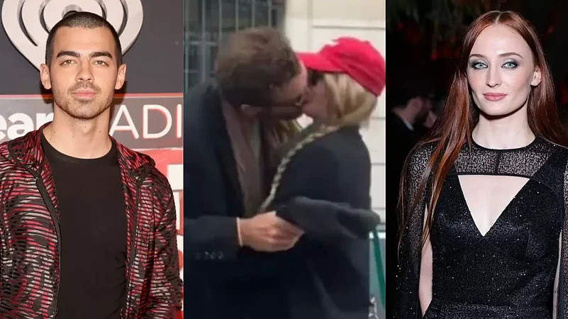 In photos obtained by 'The Sun', the 27-year-old actress wrapped her arms around the 29-year-old eligible bachelor as he courteously removed his hat to smooch her on the sidewalk. Sophie, meanwhile, appeared to be trying to go incognito by wearing a red cap and sunglasses with her long blonde hair styled in a braid during the outing.