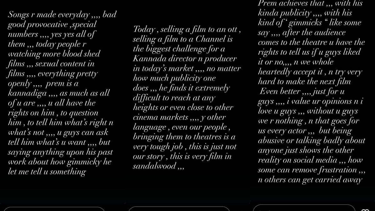 She also revealed that today, selling a film to an OTT or a channel is the biggest challenge for a Kannada director. “He finds it extremely difficult to reach any heights or even close to other cinema markets. Even our people, bringing them to theatres is a very tough job. This is not just our story, this is every film in sandalwood (sic).”