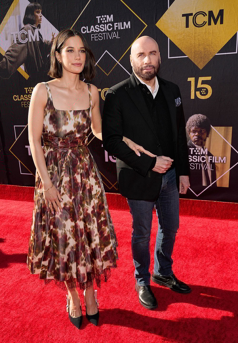 John Travolta, right, a cast member in ‘Pulp Fiction’, arrives with his daughter Ella Bleu Travolta at a 30th anniversary screening of the film on the opening night of the TCM Classic Film Festival at the TCL Chinese Theatre in Los Angeles.