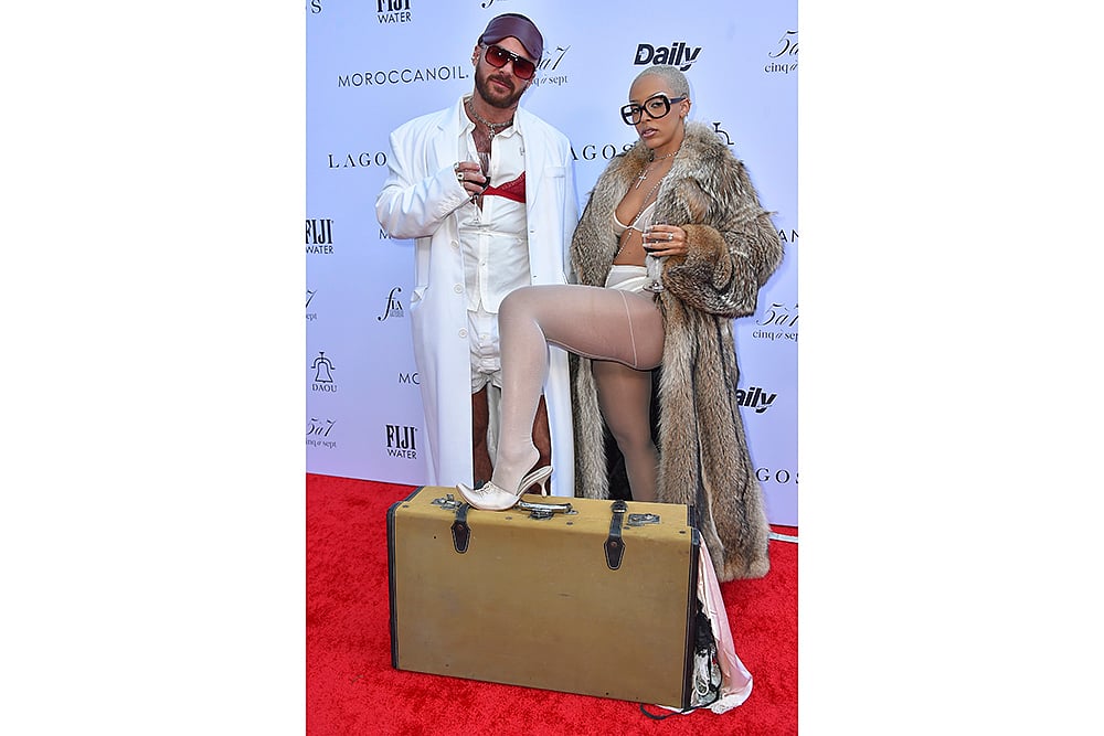 Brett Alan Nelson, left, and Doja Cat arrive at The Daily Front Row’s 8th annual Fashion Los Angeles Awards at The Beverly Hills Hotel in Beverly Hills, California.