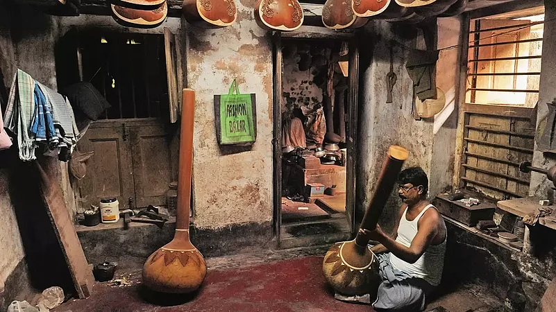 Dadpur, almost 50 km from Kolkata, is a village in Uluberia where the day begins with birdsong and the notes of the sitar. Every person in the village starts their day with their thoughts attuned to the melodious tone of this instrument. There are about fifteen houses in the village where sitars are made. The people who make sitars share an instinctive bond with the instrument’s melody and all of them learned to make sitars just by listening and watching others at work. There are some places in Kolkata as well where sitars are made. This is the instrument that gives me a nostalgic feeling as it goes back in time to my childhood when I used to practice the sitar on a regular basis. I feel soulful today whenever I hear it being played by somebody somewhere. The string instrument occupies a prominent place in Indian music and is deeply embedded in Indian culture and heritage. It is made of teak wood or tun wood and pumpkin. Nowadays, tun wood is very commonly used in the production of sitars. There are two types of sitars—‘sada’ and ‘tarafdar’. This instrument has a good market but unfortunately, due to a shortage of labour, many factories are being closed down these days.