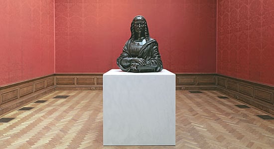 M.F. Husain turned up, twirling his paintbrush and applauding London’s Indian summer of art; Gauri Khan waxed eloquent and hoped that a Subodh Gupta sculpture will soon adorn their home in Mumbai; and London mayor Boris Johnson chained his bicycle to the railings and posed with his helmet against a four-foot bronze of Gupta’s take on Marcel Duchamp’s rude send-up of the Mona Lisa. (In 1919, Duchamp had doodled a moustache and goatee on a trashy Mona Lisa postcard and, in an audacious act of turning great art into readymade art, titled it L.H.O.O.Q which uttered in rapid French slang means “She has a hot ass”.) British contemporary artists were represented by Tracey Emin and Antony Gormley; afterwards, gallerists, curators and collectors such as Peter Nagy, Amin Jaffer and Amrita Jhaveri came to a post-preview party for 300 in the crumbling, candle-lit splendour of the old Sierra Leone embassy in Portland Place to fete Gupta and his British-born artist wife Bharti Kher.