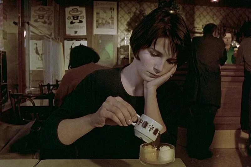 There is a shot in Blue, where Julie (an achingly stunning Juliette Binoche) is sitting in a cafe, meeting her ex-lover who has found her after a lot of effort. She is still in shock as she has recently lost her husband in a car accident. There is a man sitting on the street playing a haunting tune on his flute. Julie picks a sugar cube, places it on her brimming cup of coffee and the extreme close-up fills the screen showing the cube turn from white to brown as it soaks up the coffee. This shot takes five-and-a-half seconds. Kieslowski, in an interview, says the idea was to convey the feeling that Julie is focused on such a mundane activity, she doesn’t care about her lover coming back to her. But the shot had to be of exactly that length, not three seconds, not 11 seconds. Kieslowski’s assistant spent half a day, buying various brands of sugar cubes and timing it with a stopwatch to see which would soak up the coffee in exactly five-and-a-half seconds. Because the filmmaker believed the audience will only appreciate the shot for that length. This is Blue—lovingly chiselled, sparingly distilled, unbearably light.