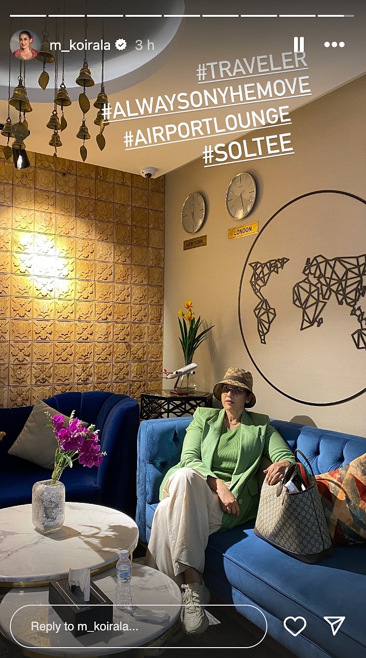 Manisha took to her Instagram stories and shared a picture from the airport lounge.