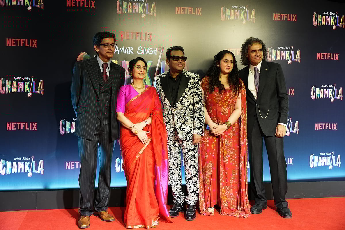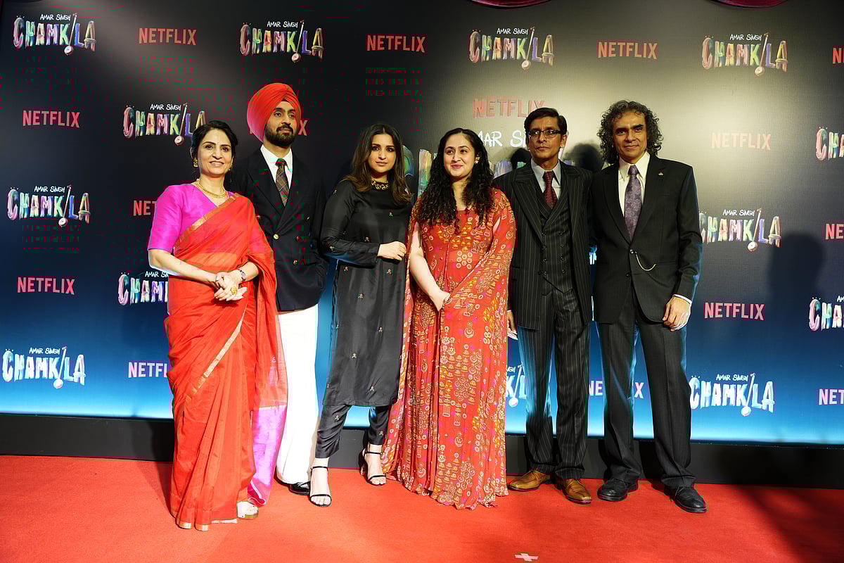 Makers of Netflix's latest cinematic project, ‘Amar Singh Chamkila,’ organised an exclusive screening for the industry on Thursday night. The lead stars of the film, Diljit Dosanjh and Parineeti Chopra, who play Punjabi folk singers Chamkila and Amarjot, graced the screens along with director Imtiaz Ali and musical maestro of the film, AR Rahman.