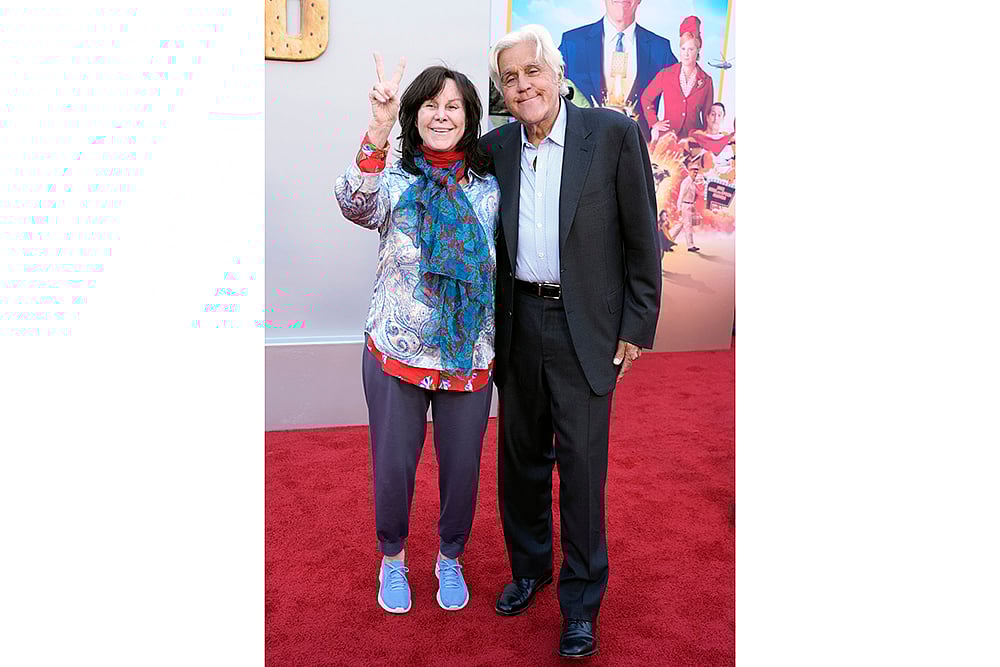 Jay Leno, right, and his wife Mavis pose together at the premiere of the Netflix film ‘Unfrosted’ at the Egyptian Theatre in Los Angeles.