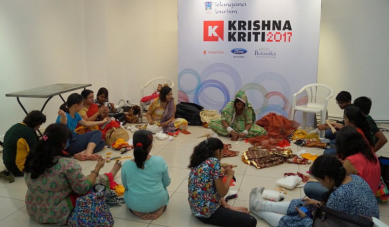 On the weekend day, Rajasthani puppetry, too, made it to a workshop at the festival hosted by the 2003-founded Krishnakriti Foundation that works for the promotion of arts across the spectrum of culture. The two-hour session saw more than a dozen participants—mostly children—trying their flair in making traditional puppets under the instruction of expert Jagdish Bhatt and his family.