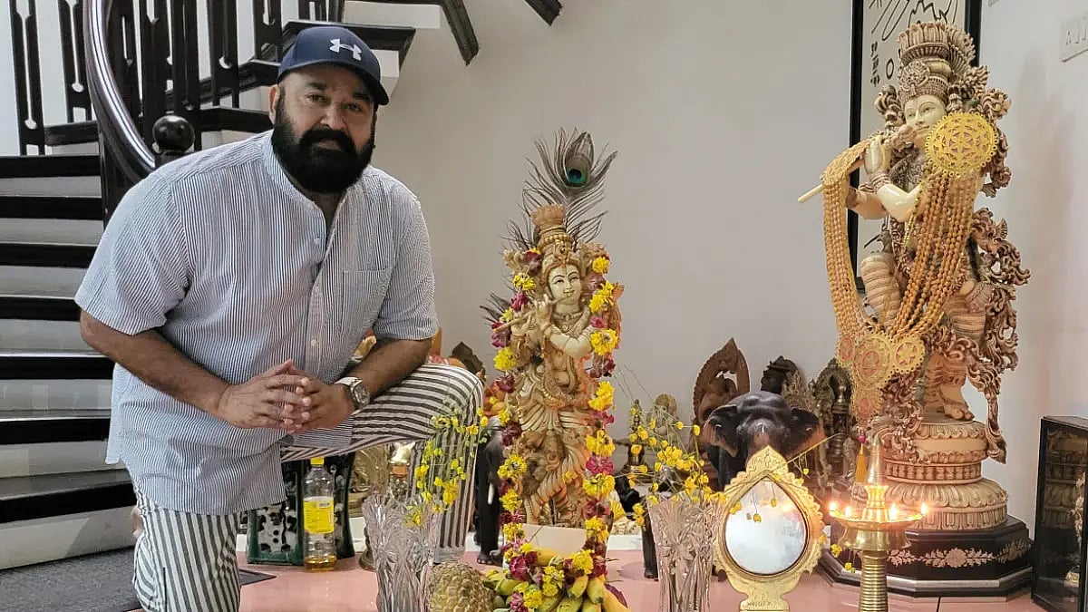 Mohanlal took to his Instagram handle and shared a pic in striped pants and shirt as he posed along with Lord Krishna to wish fans. He wrote, "Happy Vishu (sic)."
