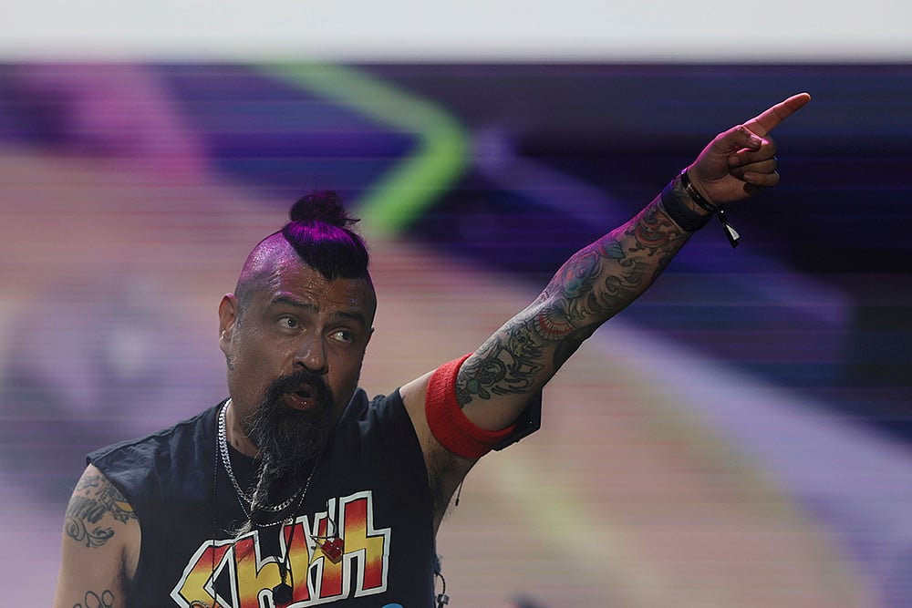 Argentina's Adrian Rodriguez, from the band Babasonicos, performs at the Vive Latino music festival in Mexico City.