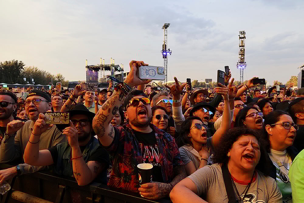 People attend a performance by Spanish band Hombres G at the Vive Latino music festival in Mexico City.